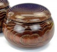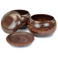 昭和時代から普及品の木製碁笥として日本全国の数多くの囲碁愛好家に使われてきた碁笥の一つが栗碁笥です。どことなく温かみのある茶褐色系の色合いと上蓋の円形のような木目が栗碁笥の独特の特徴ともいえます。ガラス碁石の収納用としても蛤碁石の収納用としてもよく使われている人気の普及木製碁笥です。