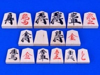 将棋駒樺材優良押しはやや軽量な押し字の木製将棋駒で表面の字が黒字で裏面の字は朱字なので、将棋のルールの「成る」をこども様や将棋入門者が覚えるのに便利な将棋駒です。