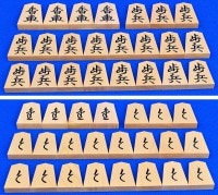 安価な木製将棋駒屋シャム黄楊将棋駒よりランクが上の、味わいある錦旗書の彫り字の御蔵島産本黄楊将棋駒です。還暦祝いや昇級・昇段祝いなど、贈り物・ギフトにもお薦めです。