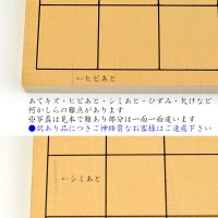 訳あり特価品の木製新桂7号折将棋盤です。将棋対局には支障がないと当店が判断した折将棋盤ですが、ヒビあと・シミあと・変形・メモリの切れやにじみ・色むら・色付け・過度に目につく木癖・あてキズなど、通常品では販売しづらい訳あり特価品の新桂7号折将棋盤です。