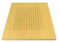 新かや材(スプルース材)の碁盤は比較的明るめの見やすい色合いでややソフトな打ち味です。表面が19路囲碁盤で裏面が13路盤の表裏使えて、囲碁初心者の囲碁入門用にも便利なリーズナブルな表裏両用の囲碁盤です。